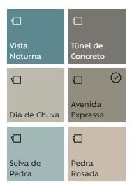 São seis cores de cimento queimado para parede: Vista Noturna, Túnel de Concreto, Dia de Chuva, Avenida Expressa, Selva de Pedra e Pedra Rosada. Você também encontra embalagens de 5 e 18 kg, que rendem 9 e 32 m², respectivamente.