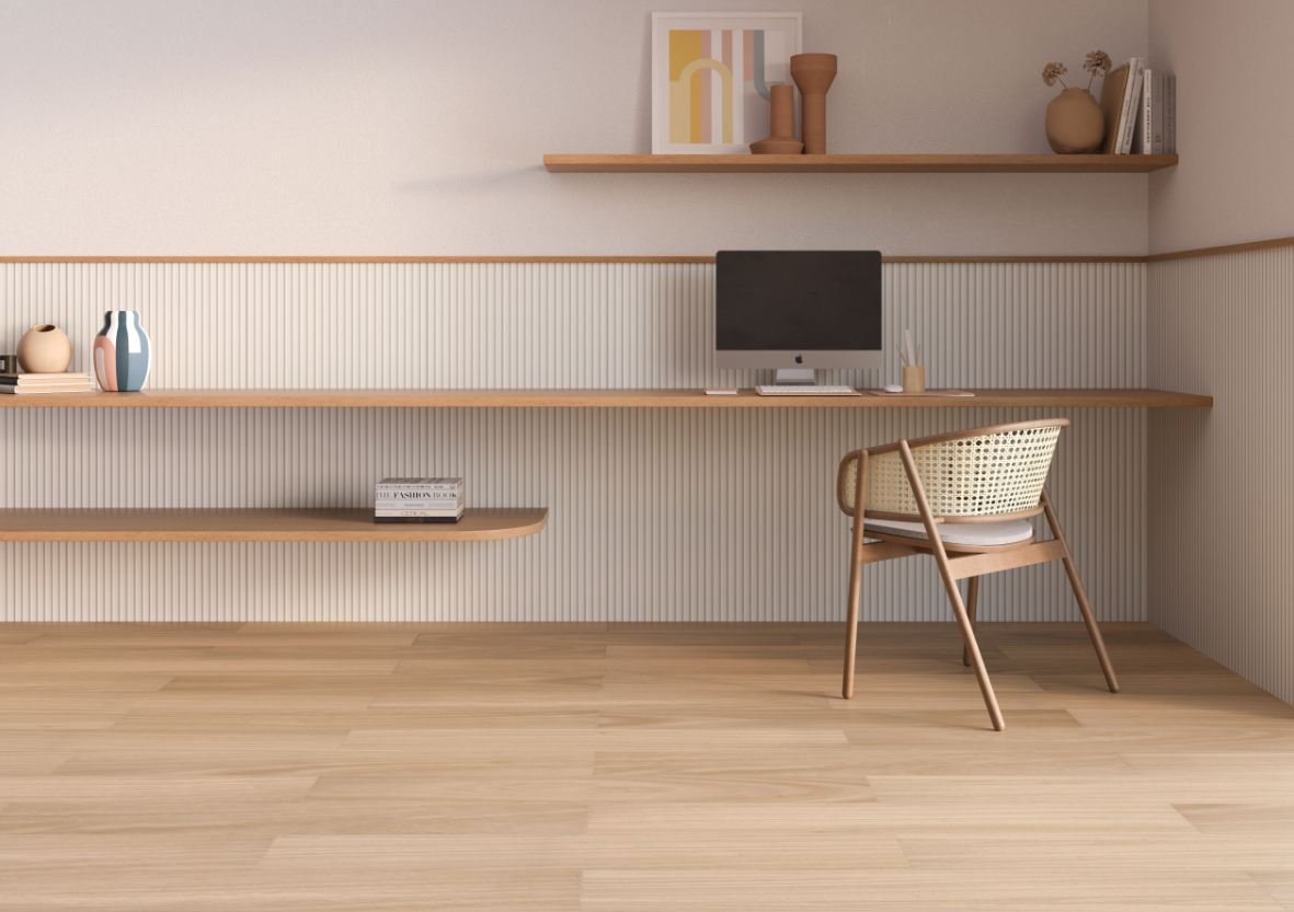 Itajai Cerejeira desperta sensações de leveza e acolhimento. O tom caramelizado, inspirado nas texturas madeira, garante um design singular, possibilitando criações únicas para pisos e paredes.
