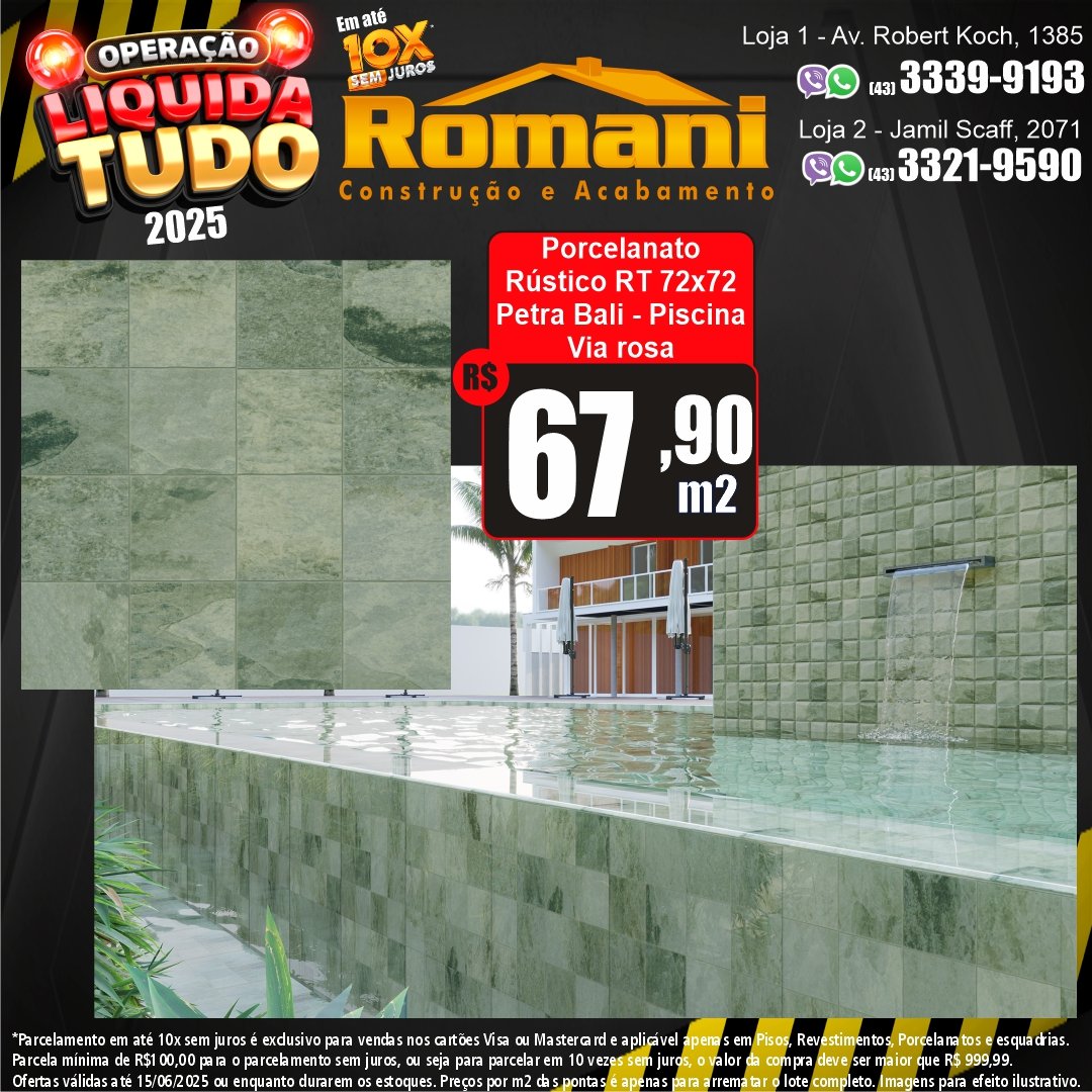 PORCELANATO PETRA BALI 72X72 GRANILHADO VIA ROSA 2,59MT